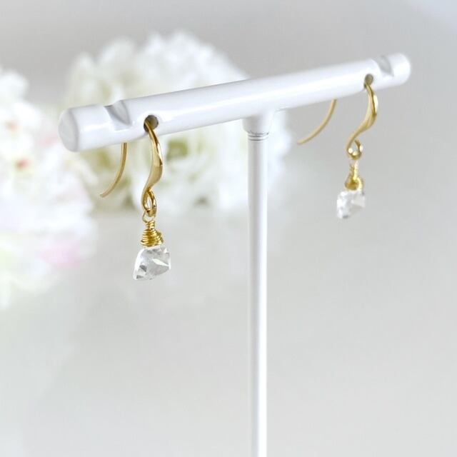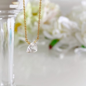 どのスタイルにも合わせやすく、胸元で輝く小さな三角形は