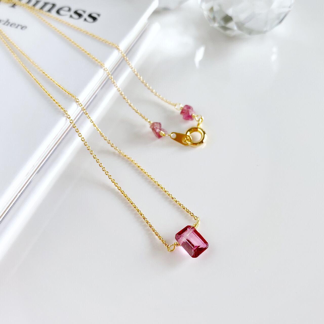 ピンクトパーズのレクタンブル(長方形)ネックレス