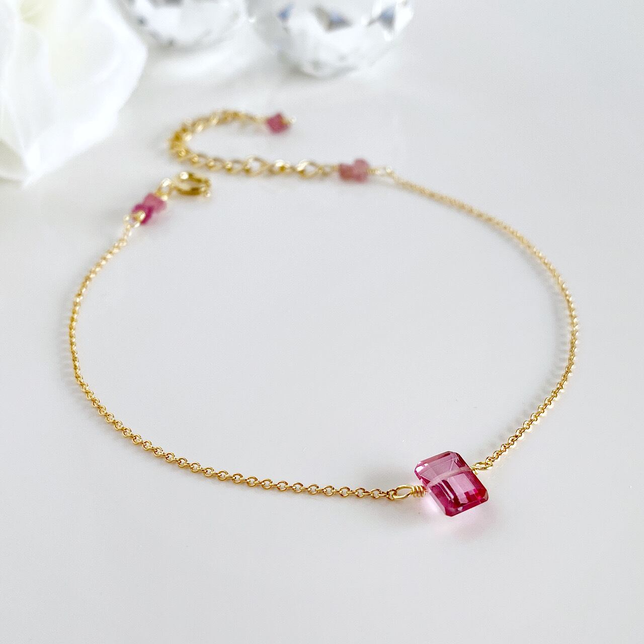 ピンクトパーズのレクタンブル(長方形)ネックレス