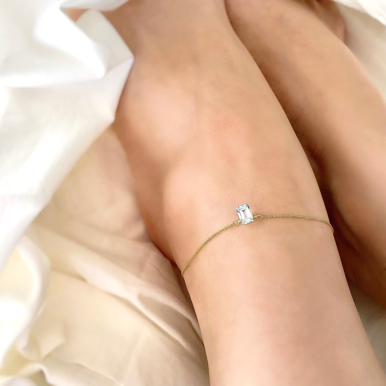 スカイブルートパーズのレクタンブル(長方形)アンクレット