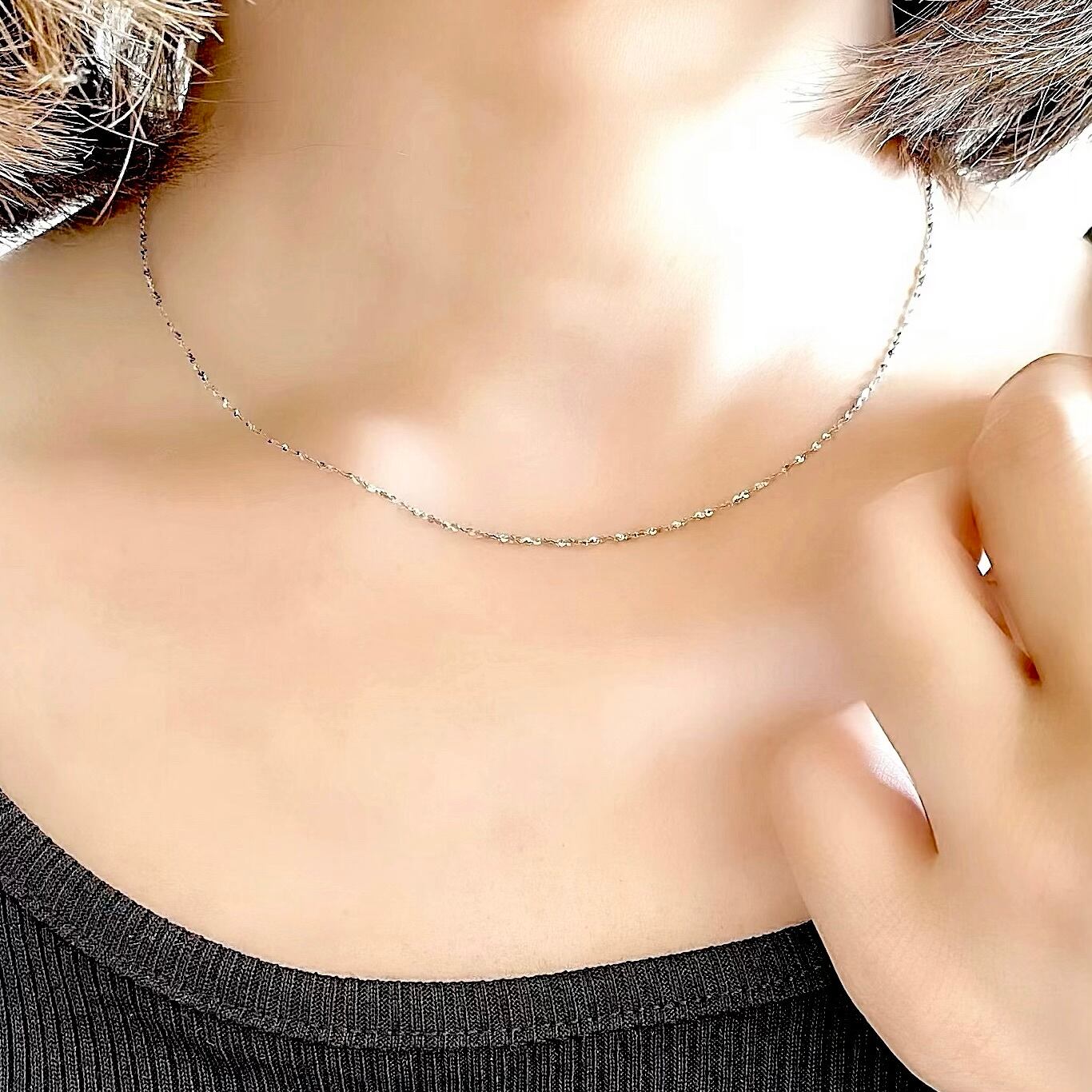 チェーンもツイストされているタイプなので光の反射でキラキラとし