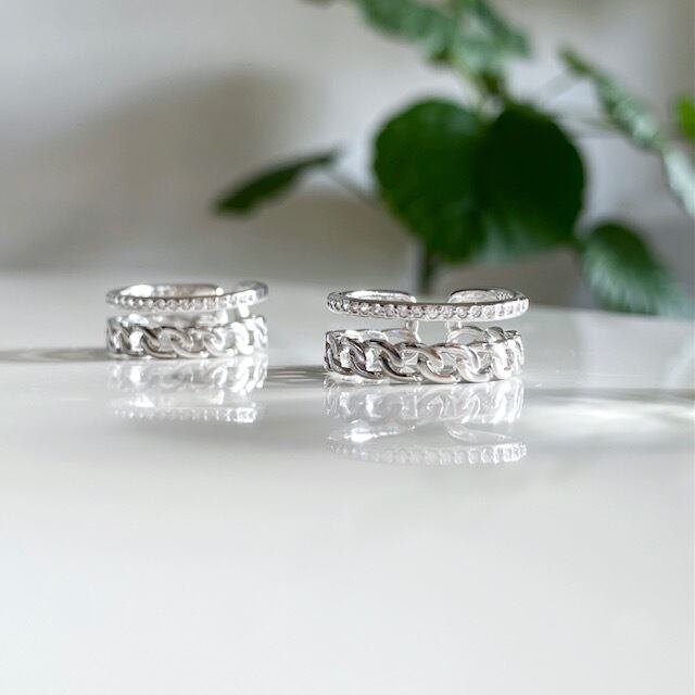 素材はsilver925でチェーンと小粒ジルコニアが並ぶ