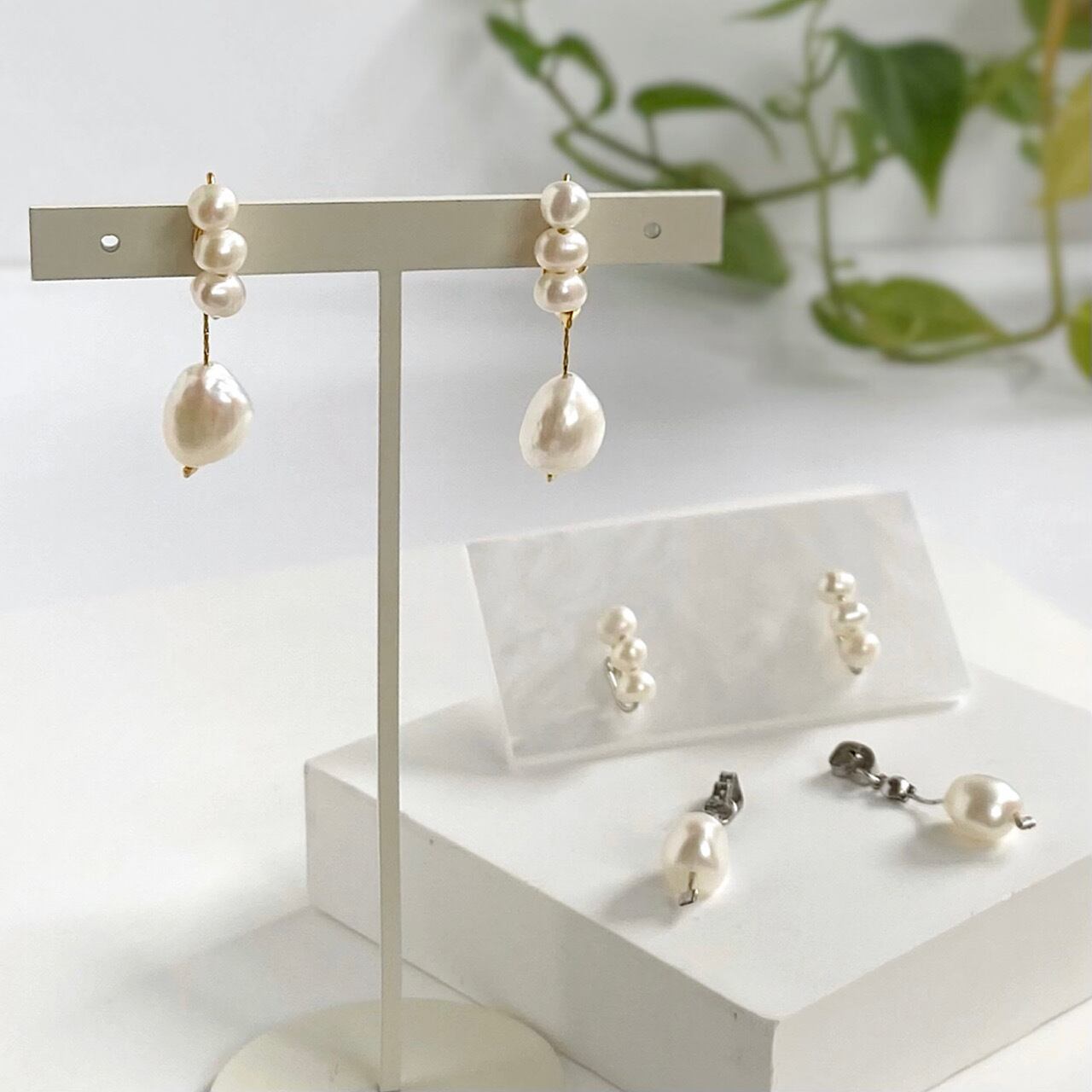 2wayタイプの淡水パールピアスになります。